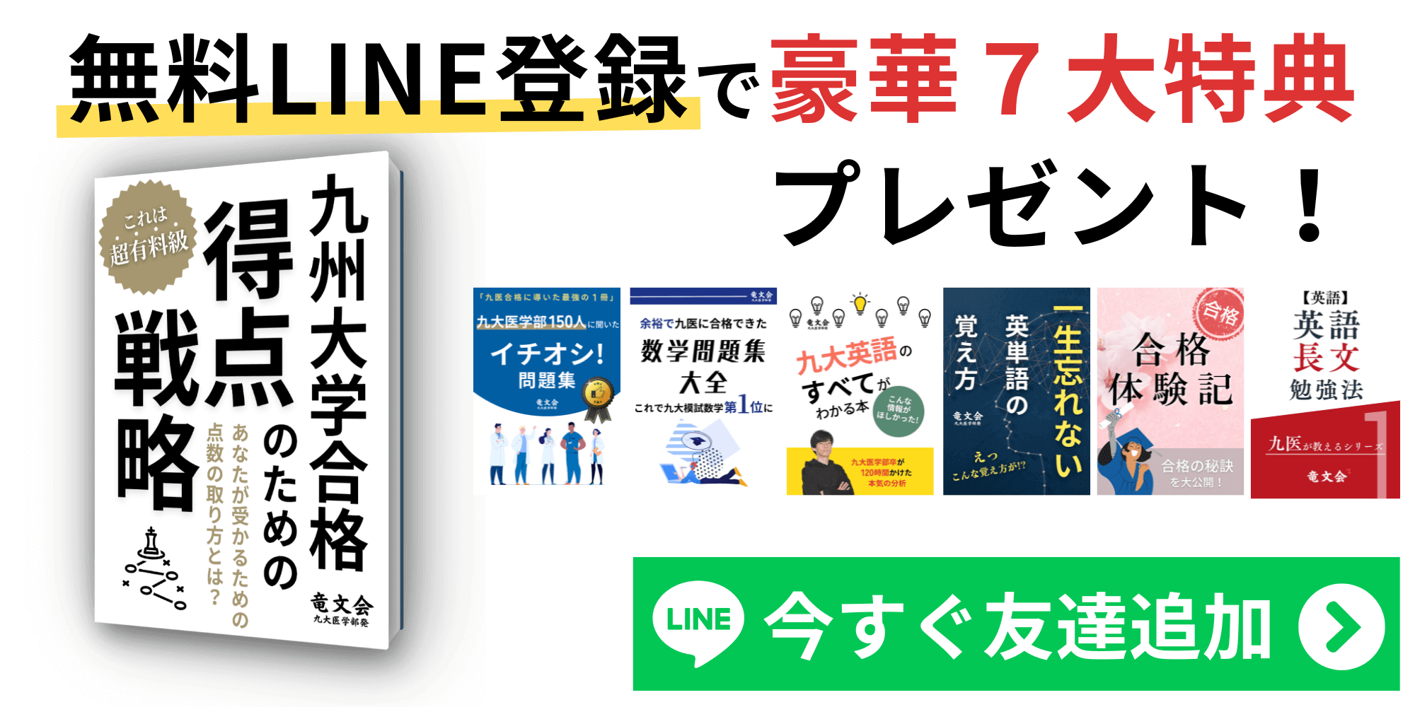 竜文会公式LINE登録者が2300人を突破しました!登録がまだの方は、無料特典をたくさん用意しているのでぜひ登録してGETしてください!